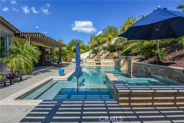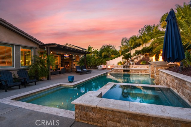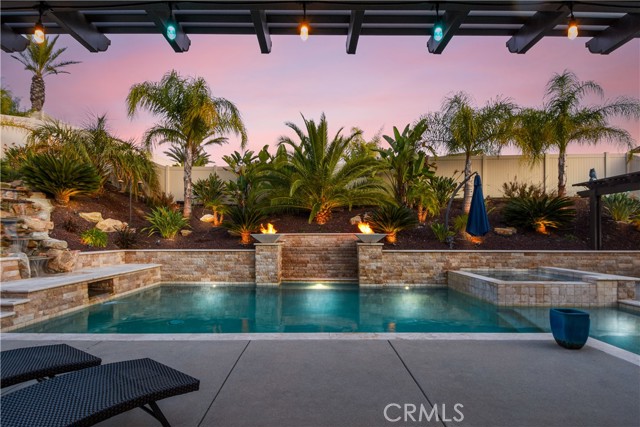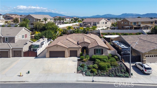 THIS HOME IS A MUST SEE!!! Welcome to the ultimate luxurious home! Pride of ownership clearly shines through in this NO HOA executive residence located in the highly desirable Meadowlark community. This is a stunning single-story home where refined elegance meets the ease of Southern California living. Built in 2015 by Pulte Homes, this beautifully designed property boasts nearly 3,300 square feet of living space, offering four spacious bedrooms and two-and-a-half bathrooms. Soaring 9-foot ceilings and an abundance of natural light create a bright, open ambiance throughout. The thoughtfully designed open-concept floor plan provides a seamless flow between the living, dining, and kitchen areas ideal for both everyday comfort and elevated entertaining. The gourmet kitchen is truly an entertainer’s dream, featuring a large island and an extra-large walk-in pantry. Expansive living spaces offer warmth and versatility, while generously sized bedrooms ensure privacy and relaxation for family and guests alike. The spacious owner’s suite serves as a private retreat, complete with a huge walk-in closet and a luxurious bathroom featuring a soaking tub, separate shower, and dual sinks providing all the elegance expected in a home of this caliber. The additional bedrooms are ample in size and share a convenient Jack & Jill bathroom. Step outside to your own private resort-style retreat, where a sparkling pool and expansive entertaining areas set the stage for unforgettable gatherings or tranquil evenings under the Southern California sky. A beautifully appointed California Room with a cozy fireplace adds an additional layer of indoor-outdoor living, creating the perfect space to relax or entertain year-round. Adding to the home’s appeal is dedicated RV parking, offering convenience and flexibility for a variety of lifestyle needs, along with a built-in central vacuum system for added ease and efficiency. The desirable single-level layout enhances accessibility and ease of living, making this residence as functional as it is sophisticated. Ideally situated in a sought-after Murrieta neighborhood, this exceptional home offers close proximity to top-rated schools, shopping, dining, commuter routes and a short distance from Temecula wineries. With its perfect blend of luxury, space, and location, this residence presents a rare opportunity to experience elevated living in one of the area's most desirable communities.