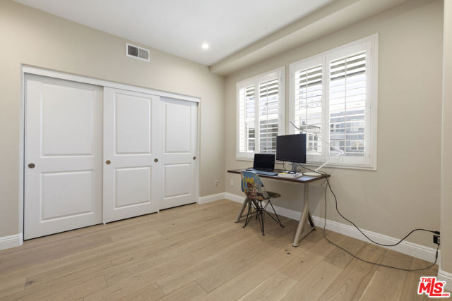Experience elevated coastal living in this stunning top-floor residence in the heart of Playa Vista. This beautifully designed 3 bedroom, 4 bathroom plus a den/office home offers an exceptional blend of modern sophistication and relaxed California comfort, with soaring ceilings and thoughtfully curated finishes throughout. The open-concept living and dining area flows seamlessly onto a private balcony perfect for morning coffee or evening unwinding while large windows wrap all sides of the home, framing abundant natural light. The gourmet kitchen is a true centerpiece, featuring sleek cabinetry, premium stainless steel appliances, generous counter space, and a breakfast bar ideal for entertaining. The spacious primary suite serves as a tranquil retreat, complete with a walk-in closet and a luxurious en-suite bathroom. The oversized third bedroom provides ultimate flexibility for a well appointed guest accommodations or creative use. The unit comes with 2 parking spots in the garage with 2 electric car chargers, as well as extra storage. Residents enjoy access to resort-style amenities, including a fitness center, pools, Tennis courts, landscaped courtyards, and community gathering spaces, all within one of Los Angeles' most vibrant and walkable neighborhoods. Just moments from Runway at Playa Vista, you'll find dining, shopping, entertainment, and outdoor recreation right at your doorstep. This is a rare opportunity to own a top-floor unit in one of Playa Vista's most sought-after communities where style, convenience, and coastal charm come together effortlessly.