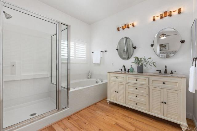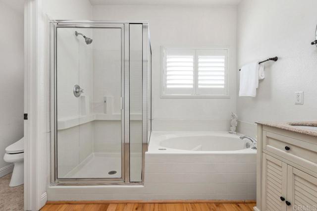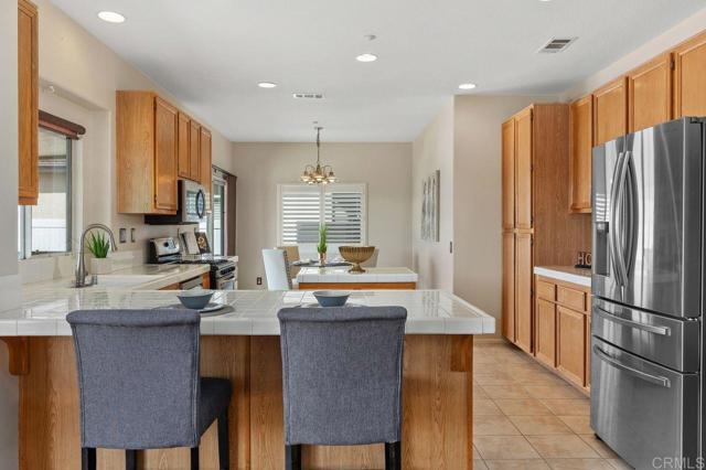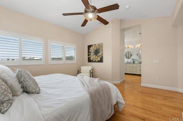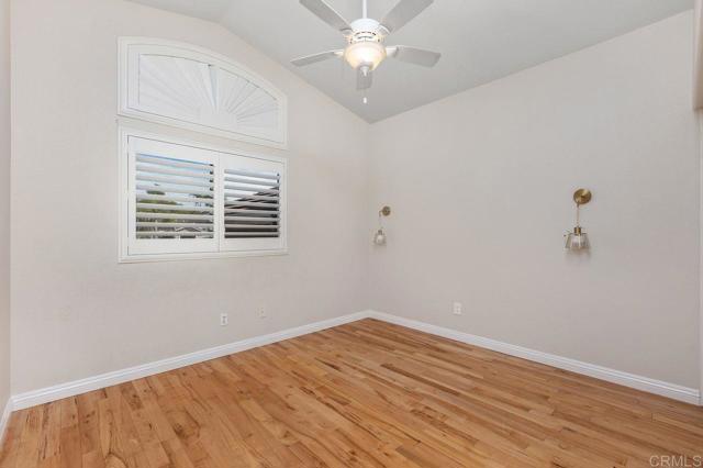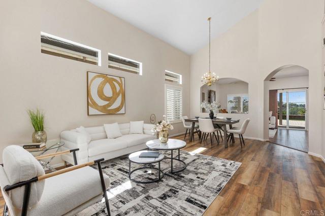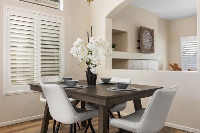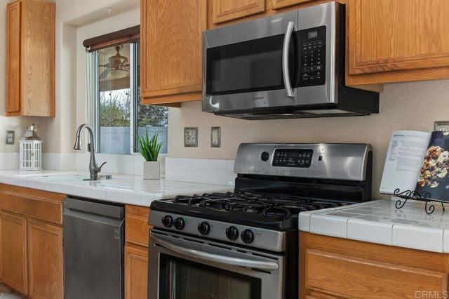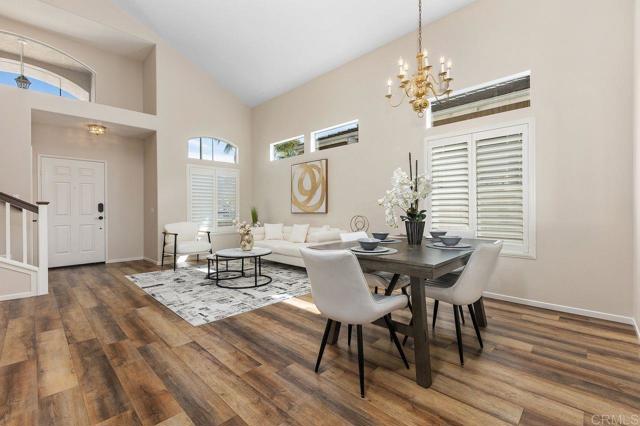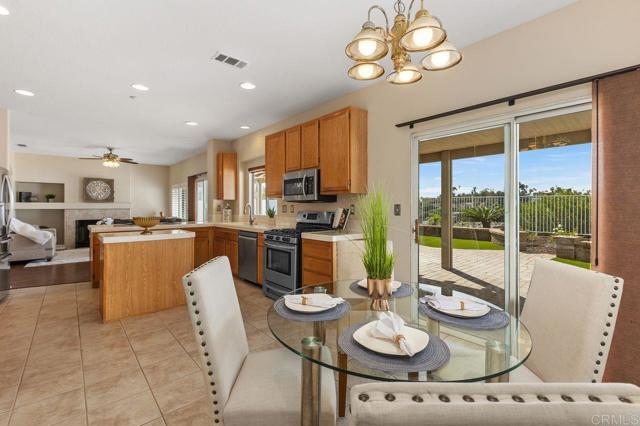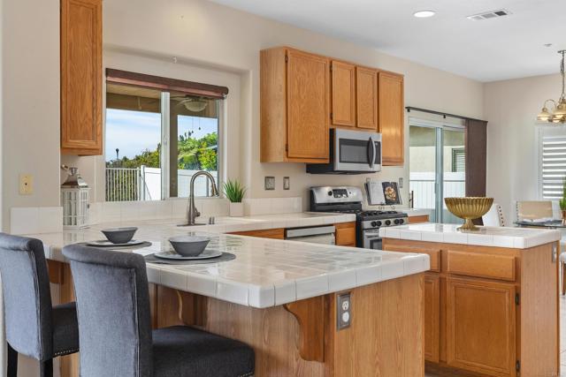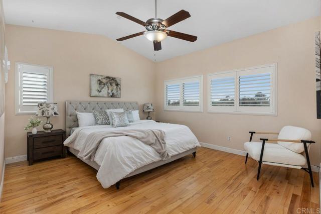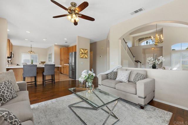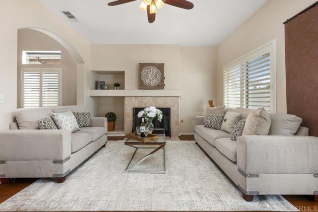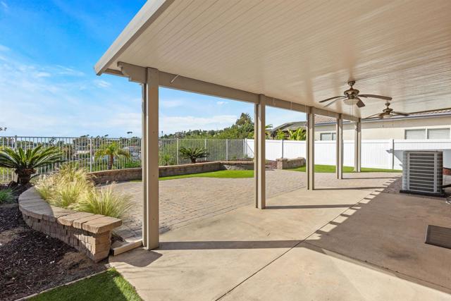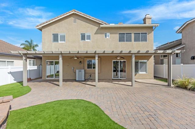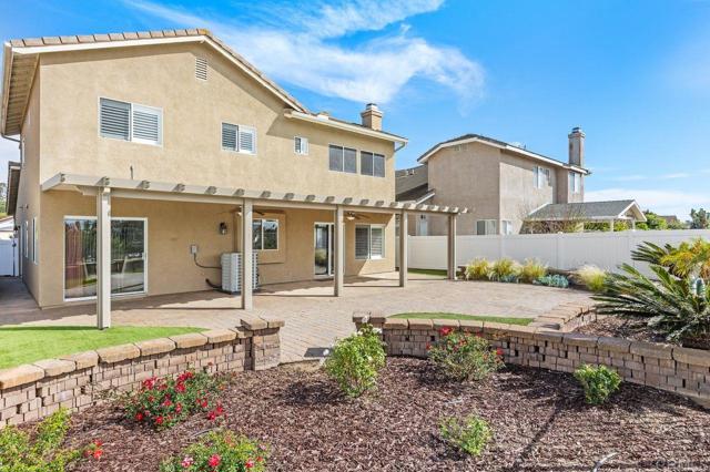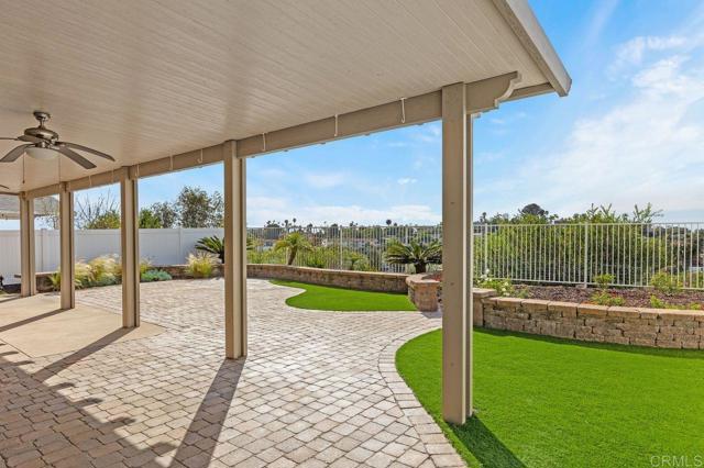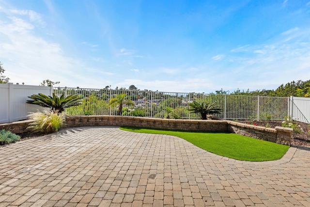 Beautiful home at end of cul de sac. Located in wonderful area of Vista & walking distance to downtown with restaurants, line dancing & music. Brengle Terrace Park & the Moonlight Amphitheatre also very close. Recent low maintenance landscaping with view of surrounding area & park below. Home shows beautifully with lots of upgrades including shutters && shades, wood floors, newer heater & A/C. There are 4 bedrooms upstairs & two baths, office or possible 5th bedroom downstairs with refurbished bath & laundry room. Lots of extra cabinet storage many with pullouts. Kitchen has breakfast bar & center island & newer stainless appliances. Front & backyard have artificial grass, block walls & pavers, rose garden & room for vegie garden. Large aluminum patio cover to enjoy outdoor living all year long. New vinyl fencing on both sides of yard. Property goes down to the bottom of slope to hiking trails below. Home has solar panels.