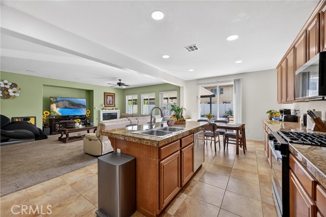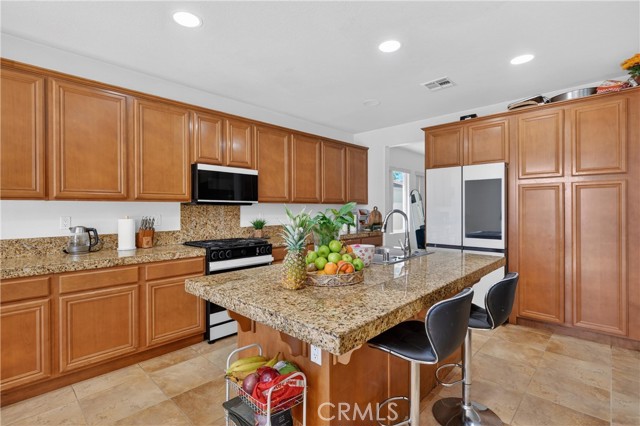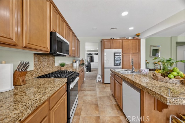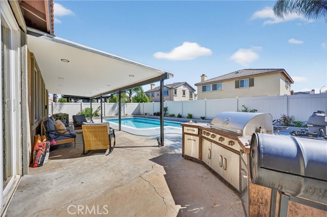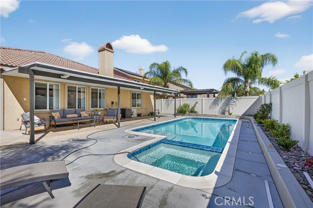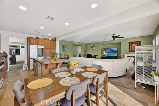 This beautiful 4-bedroom, 2-bath home comes equipped with solar and offers a spacious, inviting layout perfect for comfortable living. The open floor plan features both formal and informal living areas, a dedicated dining space, and a versatile work area—ideal for today’s lifestyle. The oversized primary bedroom provides a relaxing retreat, while the main bathroom includes a convenient step-in bathtub and a separate stand-alone shower. The kitchen is well-appointed with stainless steel appliances, granite countertops, and a cozy breakfast nook. It opens seamlessly into the informal living room, complete with a warm and inviting fireplace—perfect for cozy winter evenings. Step outside to a backyard designed for enjoyment and entertaining. Enjoy fresh fruit from mature pomegranate and apple trees, relax under the covered patio just off the kitchen, or host gatherings with the built-in barbecue grill and sparkling swimming pool. Don’t miss this opportunity—come see it today and make it your home!