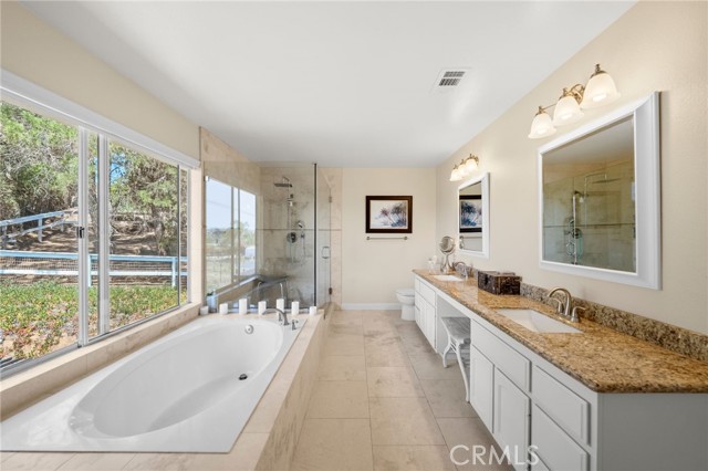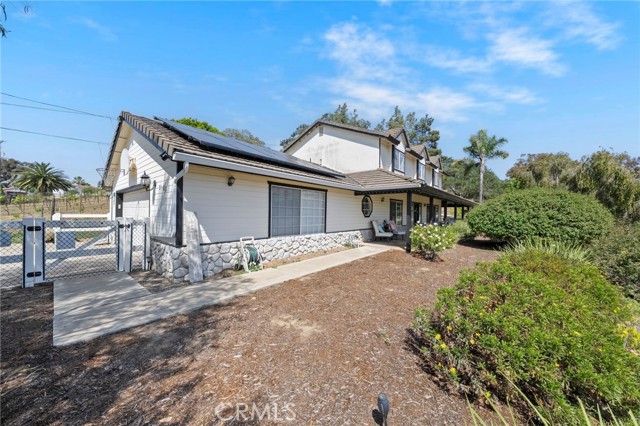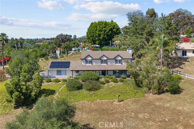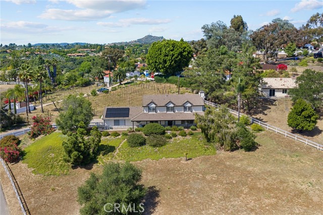 Welcome to a private sanctuary in the heart of Fallbrook. Set on 1.3 acres along desirable Reche Road, this light-filled home offers space, serenity, and a rare connection to the surrounding landscape. With 3 bedrooms, 3 bathrooms, and approximately 2364 square feet, the home is designed for both comfort and effortless indoor outdoor living. Natural light pours in throughout, highlighting peaceful living spaces and a tranquil primary suite that feels like a true retreat. The primary suite features its own fireplace, private balcony, and a spa-like bath with a separate oval soaking tub and oversized shower. A stunning rock fireplace anchors the family room, adding warmth and character to the main living space. Step outside to the incredible covered wraparound patio where you can take in beautiful views, entertain with ease, or simply unwind in the jacuzzi under the open sky. The property features a desirable southern exposure hillside, ideal for a potential vineyard or expanded agricultural use, along with mature lemon and pomegranate trees that enhance the natural setting. Additional highlights include luxury plank vinyl flooring throughout and leased solar for added efficiency and long term value. The land offers a sense of privacy while still being conveniently located near the 15 freeway, downtown Fallbrook, and the scenic trails of Live Oak Park. This is more than a home. It is a place to slow down, reconnect, and enjoy the lifestyle that makes Fallbrook so special. All information deemed reliable but not guaranteed. Buyer and buyer agent to perform their own due diligence and verify all aspects of the property including square footage lot size zoning permits and condition.