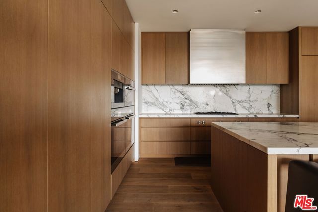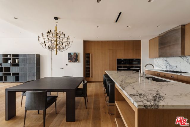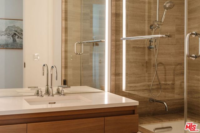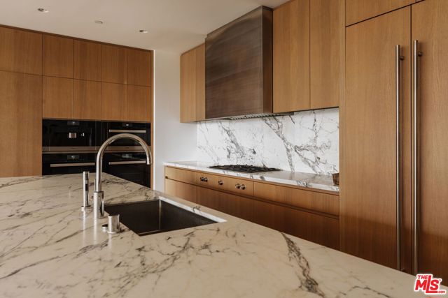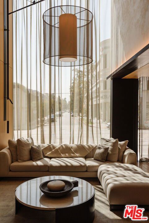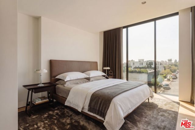 Residence 4G | 8899 Beverly is the world renowned architects Olson Kundig's "Love Letter to Los Angeles." This AD 100 architect's LEED Gold certified masterpiece is the result of a meticulous adaptive reuse renovation, transforming a 1964 mid century landmark into the finest residential development to hit the Los Angeles skyline. This sophisticated two bedroom, two bathroom home is distinguished by its deep linear terrace, providing an expanded outdoor footprint and a private gallery overlooking the Design District. The extraordinary Swiss made Vitrocsa glass wall system slides away to seamlessly merge the open concept Great Room with the lushly landscaped exterior. The finest hand selected materials include travertine throughout, Sub Zero, Miele and Gaggenau appliances, Calacatta Gold marble, and custom door handles of bronze and hand stitched leather. The home is further elevated by bespoke Eggersmann cabinetry, custom fitted for both the primary and secondary closets. Ceiling heights soar up to 11 feet, including custom recessed and cove lighting. Building amenities include 24 hour discreet security, elite concierge services, a state of the art fitness center, and a private studio. 8899 has an extreme focus on privacy, safety, and exclusivity, featuring over a quarter acre of outdoor space by Coen + Partners with a resort style pool, oversized spa, and custom outdoor kitchen. Enjoy short walks to premier dining and shopping including The Ivy, Great White, and Cecconi's. Experience the exclusivity of Olson Kundig in this ultra prime, walkable Los Angeles location as a singular architectural achievement.