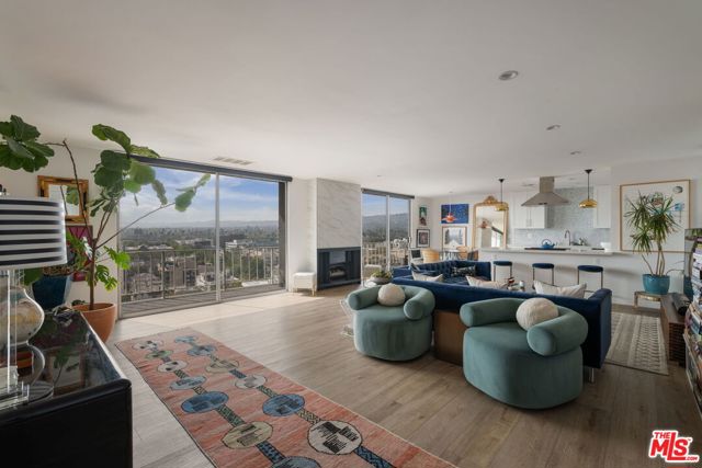 Penthouse Twelve. There is only one 12. Rarely offered and highly coveted, this top-floor residence crowns one of the most recognized full-service buildings on the Doheny corridor. Reimagined with a refined, contemporary sensibility, Penthouse Twelve delivers a level of finish, light, and privacy seldom available in this location.Western exposures frame sweeping, unobstructed vistaslayered mountain silhouettes, watercolor sunsets, and the evolving glow of Los Angeles at nightvisible from every room. The open-concept living and dining spaces are expansive yet intentional, designed for both large-scale entertaining and quiet daily living. Clean architectural lines, curated materials, and a restrained palette create a timeless interior that prioritizes volume, proportion, and natural light.The two-bedroom layout is thoughtfully separated, each with dedicated baths, complemented by a guest powder room. One bedroom has a full walk in closet, and there are ample additional closets throughout for storage.Residents enjoy the full-service lifestyle that defines 100 S. Doheny: 24-hour security and concierge, a resort-style pool, tennis court, fitness center, and private resident spacesall moments from Beverly Hills, the Sunset Strip, and the city's most established retail and dining destinations.Two side-by-side parking spaces and additional storage complete the offering.
