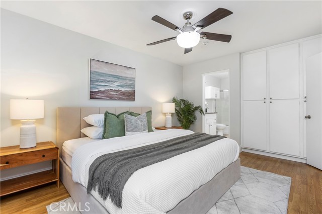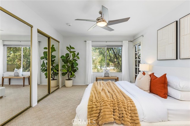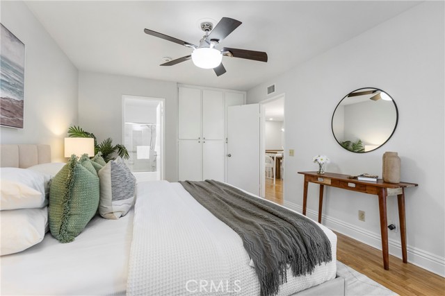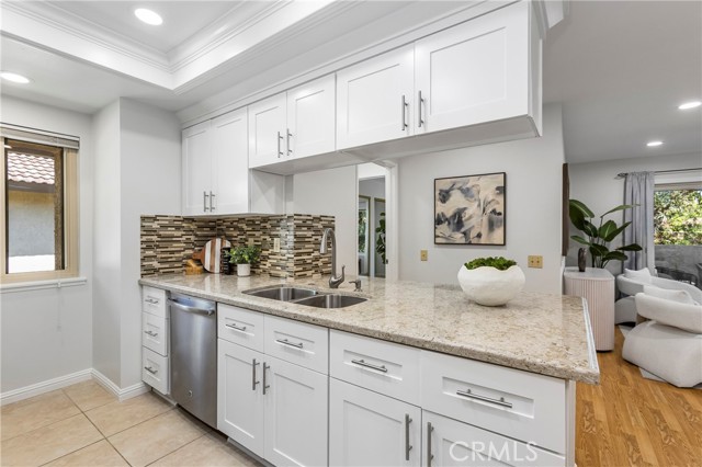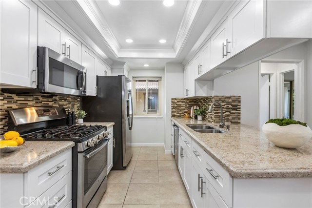 Tucked into a well-kept community, this renovated upper-level end-unit condo offers a rare blend of privacy, convenience, and modern design. The expansive open layout flows seamlessly through the kitchen, dining, and living areas, drawing your eye out to a full-length private balcony, creating a space that feels cohesive, connected, and easy to live in. The kitchen anchors the home with a clean, modern presence with Custom White Cabinetry with soft-close drawers, Quartz counters, and a suite of Stainless appliances that include Dishwasher, Refrigerator, Built-in Microwave, and a 5-Burner Gas Range w/Griddle, all complemented by a Tray Ceiling w/Recessed Lighting & Crown Molding detail that adds a layer of refined sophistication. What sets this home apart is its DUAL PRIMARY layout—two private bedroom suites positioned for comfort and separation, each with its own en-suite bath and direct access to the balcony. One suite features a walk-in closet wi/built-in cabinetry, while the other offers a wall of mirrored wardrobes plus a secondary closet, providing exceptional storage. The layout delivers flexibility without compromise. Both updated baths have granite counters and clean finishes that mirror the tone of the home. Behind the scenes, the major systems have been thoughtfully addressed - including updated HVAC (Sep '20), Dual-Pane Windows & Sliding Doors (Aug '21), Water Heater Feb '22), and PEX Re-piping with the downstairs neighbor (Aug '22) - removing much of the typical uncertainty and allowing you to enjoy the space from day one. Interior details include laminate wood flooring, 4" baseboards, recessed lighting w/dimmers, fresh paint, and energy efficient Ecobee smart thermostat (w/App control). A spacious main level laundry room w/an abundance of storage cabinets ensures everyday ease, while the ATTACHED 1-car DIRECT ACCESS Garage w/Built-in Storage adds a layer of everyday safety & convenience. Steps to 2 Community Pools/Spas and a short stroll to walking trails, Peachwood Park & Tamarisk Sports Park w/Playground, Basketball Court, Baseball Field, Walking Path, & Picnic areas - spaces that extend the lifestyle beyond the front door. With close proximity to Lake Forest Sports Park & Recreation Center, Irvine Spectrum & Irvine Great Park, the location supports both activity and ease. HOA fee includes trash. With the major improvements already completed, this is a rare opportunity to step into a home that’s been thoughtfully updated and ready to enjoy.