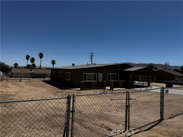 WOW! What a great looking home at an even better price! This spacious 3-bedroom, 2-bath home also includes a bonus room, giving you over 1,500 square feet of living space to make your own. It’s got a solid layout, great bones, and has been recently refreshed with brand new carpet in the bedrooms and fresh interior paint, giving it a clean and inviting feel from the moment you walk in. Located in a nice, quiet neighborhood, it's also just a short walk to Lucky Park, so you’re close to schools, playgrounds, and community events. The home sits on a fully fenced lot with drive-thru access, making it ideal for extra vehicles, trailers, or weekend toys. There's also a covered carport, dual-pane windows, and natural gas appliances a big plus in this area! Inside, you'll find a spacious kitchen with tile flooring, a separate laundry area, and a layout that feels open and welcoming. The yard is clean and open with concrete walkways, offering plenty of space to garden, BBQ, or simply relax under the desert sky. One of the best-priced homes in 29 Palms—come take a look today! This one has a lot going for it, and with its recent updates and great price, it’s ready for its next owner to enjoy.