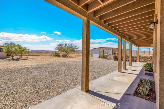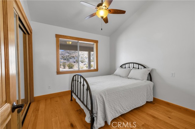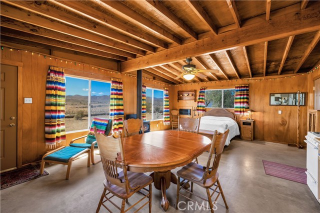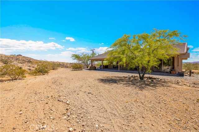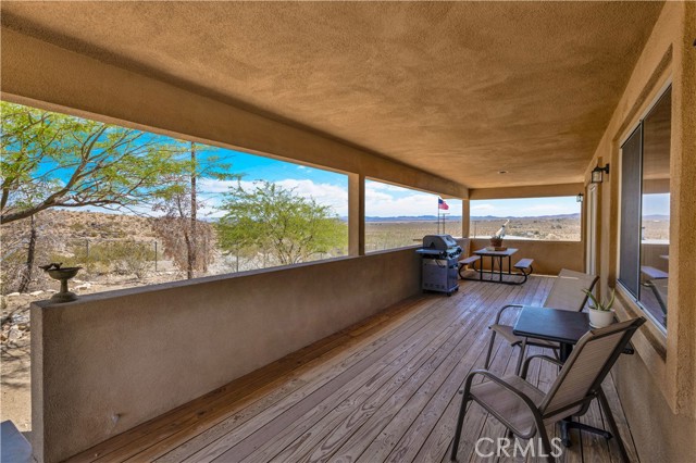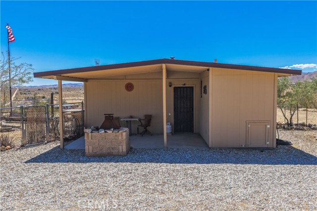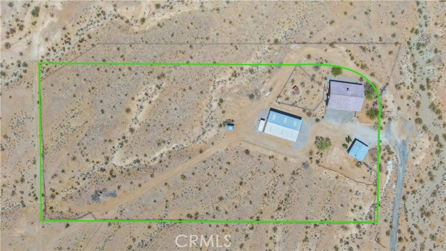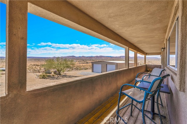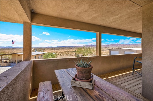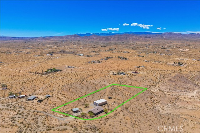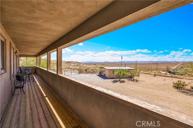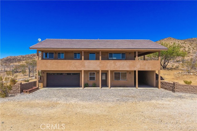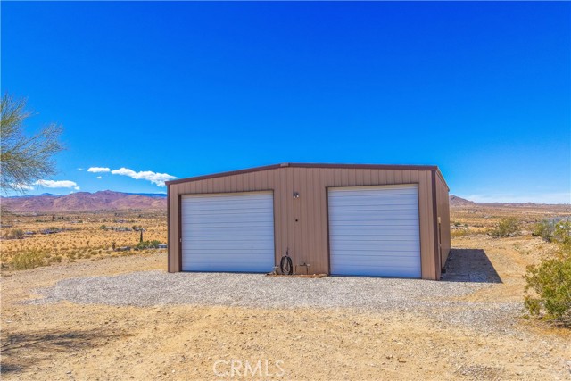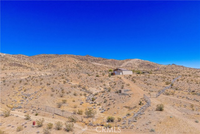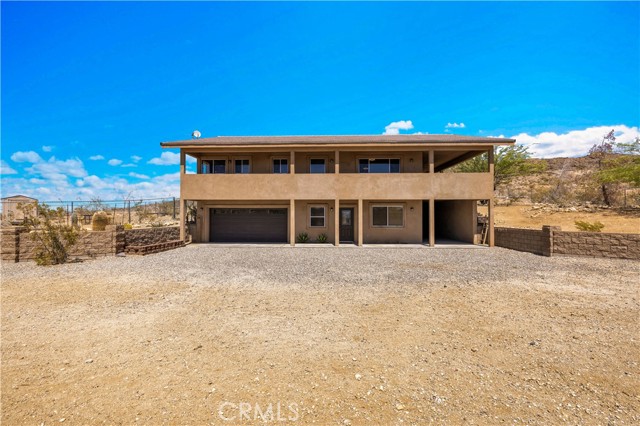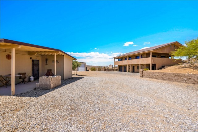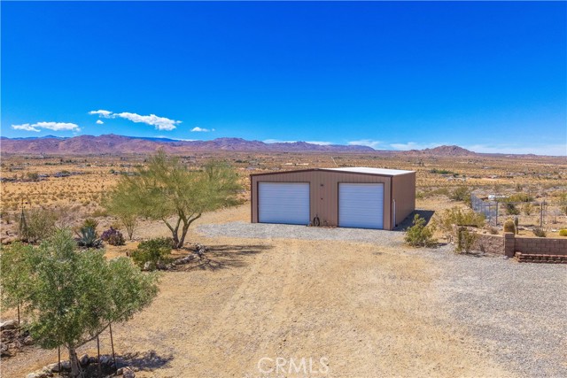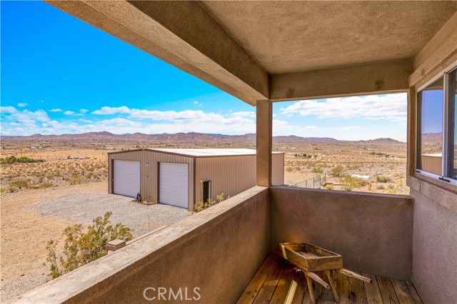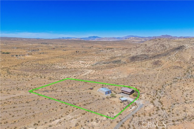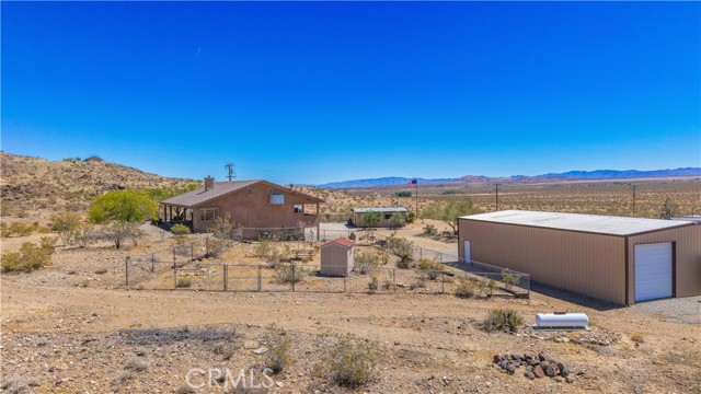 Large two-story main home, additional cabin, and a 2,400 sq ft workshop all on a fenced 5-acre parcel. This unique property is the last home on the street, backed directly against the mountain, offering incredible panoramic views overlooking all of Landers and unmatched privacy. The 2012 custom-built two-story main home features high-end finishes throughout, including real wood flooring, custom oak cabinetry, and laundry rooms on both levels. The upper level showcases vaulted ceilings and an open-concept layout, with a spacious kitchen featuring raw-edge granite countertops, abundant cabinetry, and ample workspace. The living room includes a wood stove and multiple sliders leading to both the front wraparound balcony and back patio. Bedrooms are generously sized, and the primary suite offers a massive walk-in closet, patio access, and a beautifully finished bathroom with soaking tub and walk-in shower. A bedroom on the lower level and a fully finished two-car garage add to the flexibility. The separate cabin provides excellent additional living space for guests, featuring an open layout, well-preserved retro charm, beautiful views, its own bathroom with walk-in shower, front porch, and a cross-fenced yard. The 2,400 sq ft metal workshop is a standout feature, equipped with three RV-height roll-up doors, power throughout with multiple 220 outlets, laundry hookups, a car lift, and custom fabrication tables with built-in storage—ideal for hobbyists, contractors, or business use. Additional features include a Connex storage container and full RV hookups. Properties offering this level of space, privacy, views, and versatility are rare—this is a must-see to truly appreciate everything it has to offer.