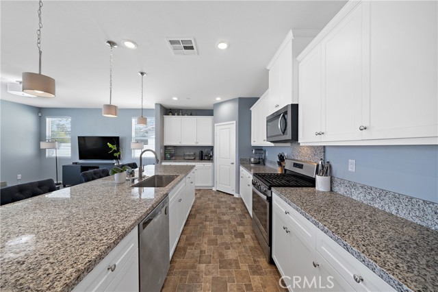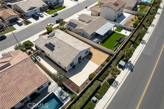Welcome to 31132 Petal Circle, located in the highly desirable Heritage Ranch. Tucked away on a quiet cul-de-sac, this beautifully upgraded home offers nearly 2,100 sq. ft. of living space with 4 bedrooms, 3 FULL bathrooms, and sits on an expansive 8,000 sq. ft. lot HUGE BACKYARD AND SIDE YARDS with RV potential and still POOL potential a rare and valuable feature. Designed for both comfort and functionality, the open concept layout creates a seamless flow between the main living spaces, making it ideal for everyday living and entertaining. The kitchen is the centerpiece of the home, showcasing white cabinetry, granite countertops, stainless steel appliances, and a large island that opens directly to the spacious living and dining areas creating a bright, connected great room feel. Additional upgrades throughout include custom interior paint, updated lighting fixtures, and a well-maintained interior that reflects true pride of ownership. The backyard is thoughtfully finished with concrete and DG landscaping, offering a clean, low maintenance outdoor space perfect for entertaining, relaxing, or customizing to your needs. The garage features built-in overhead storage racks, providing added convenience and maximizing usable space. Located just a short walk to scenic trails and a large community park, this home offers an ideal setting for families and an active lifestyle. With a low HOA of only $32 per month, you get added value without the high monthly cost. With its prime cul-de-sac location, functional floor plan, upgrades, and outdoor potential, this move-in ready home stands out as an exceptional opportunity in one of Winchester’s most sought-after neighborhoods.