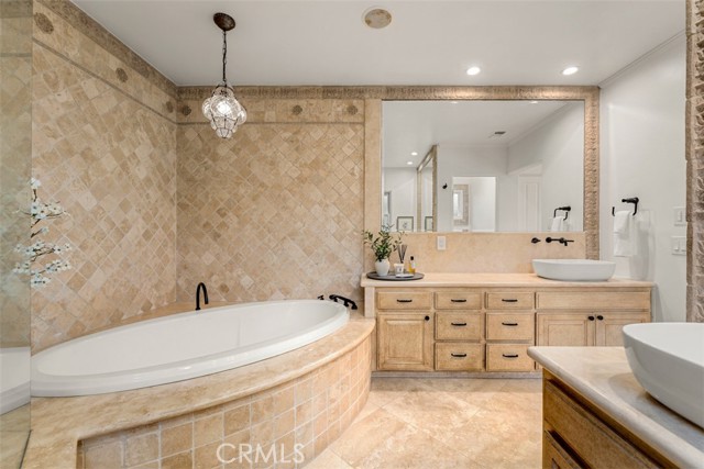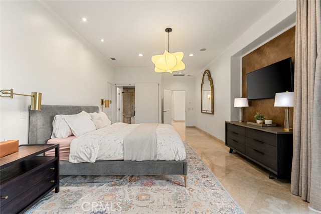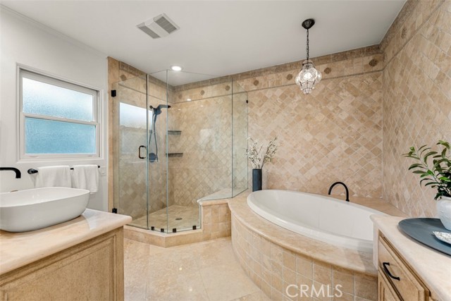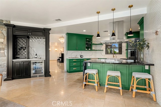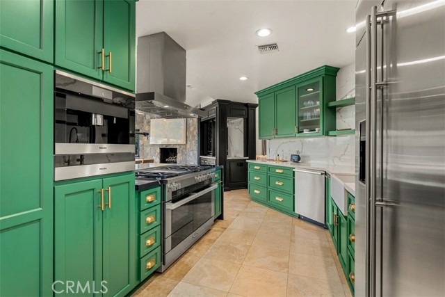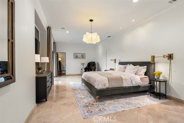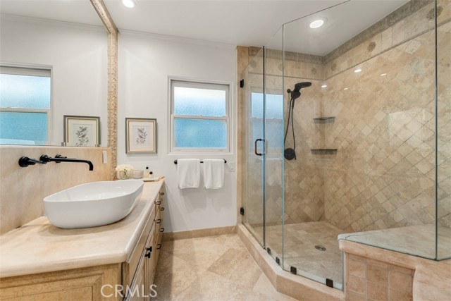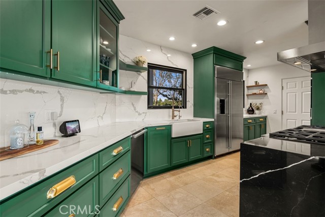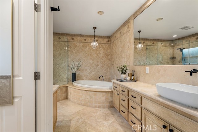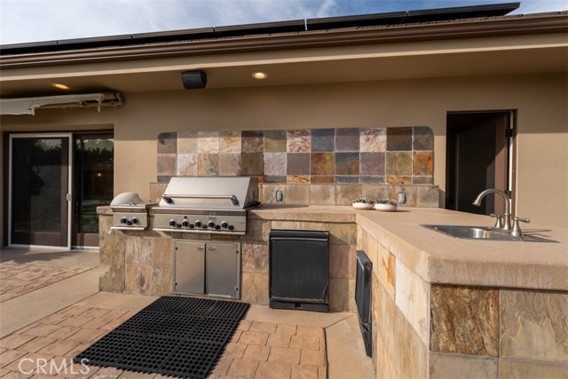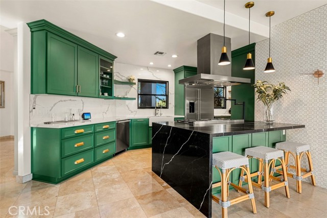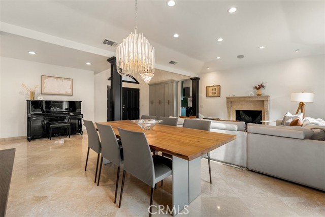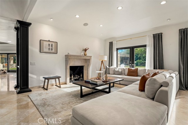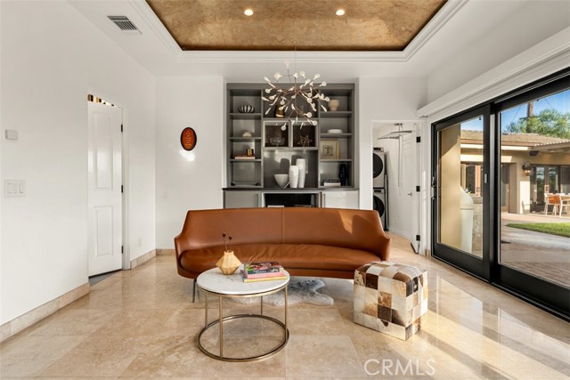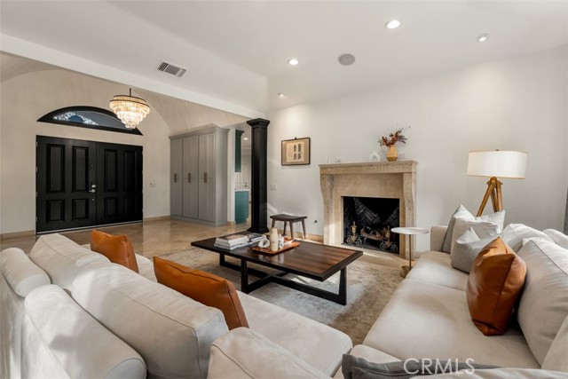 Welcome to a rare offering, a single level luxury estate located in Fullerton's most coveted enclave of custom built legacy homes. This residence blends refined architecture, premium finishes, & a layout designed for elegant living & upscale entertaining. Tucked at the corner of a private road cul-de-sac and exclusivity is apparent. The home features Andersen traditional French-style doors & windows, framing the home beautifully, inviting natural light, while maintaining exceptional energy efficiency. Natural travertine flooring extends throughout the main living areas, enhancing the homes organic palette & effortless indoor-outdoor flow. Bold, sophisticated & undeniably striking, the kitchen is a study of contrast & dimension. Dramatic black & white-veined marble paired w/ soft white & gray-veined quartz slab surfaces create a captivating visual interplay, while rich forest green cabinetry introduce depth & elegance. High grade Miele appliances reflect light with mirror like finish, adding a layer of modern refinement & performance-driven luxury, a kitchen that feels both artful and functional. Multiple seating and dining areas offers incredible flexibility for gathering, entertaining or enjoying everyday family moments. A seamless plaster wall finish present a refined, uninterrupted visual flow. The primary suite is truly its own retreat designed for calm comfort. The adjacent study is a standout feature, complete w/ custom shelving. Throughout the home, lighting is not merely functional, they are sculptural, whimsical, curated & thoughtfully placed acting as visual cues & layered ambiance. The secondary bedrooms & bathrooms are far from an afterthought. Bedrooms w/ wood floors & crown molding. Bathrooms w/ artfully selected tilework from floor to ceiling transform each space into a spa-like retreat. The guest suite generously scaled & beautifully appointed rival a luxury resort experience w/ a kitchenette & full bathroom. The outdoor living amenities is nothing short of spectacular. A heated infinity pool & spa is the centerpiece, a cabana, a hut & versatile gathering spaces surrounded by sweeping, picturesque views whether hosting or unwinding feels like a getaway. Integrated into the property is a fully owned 50-panel solar energy system delivering both efficiency & long term cost savings. Experience refined living in this beautifully rebuilt residence completed in 2002 & designed to offer the comfort of newer systems paired with timeless elegance.