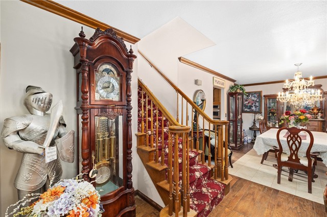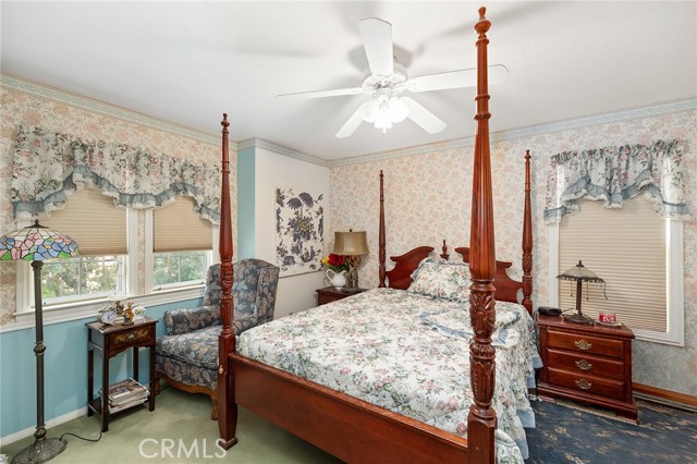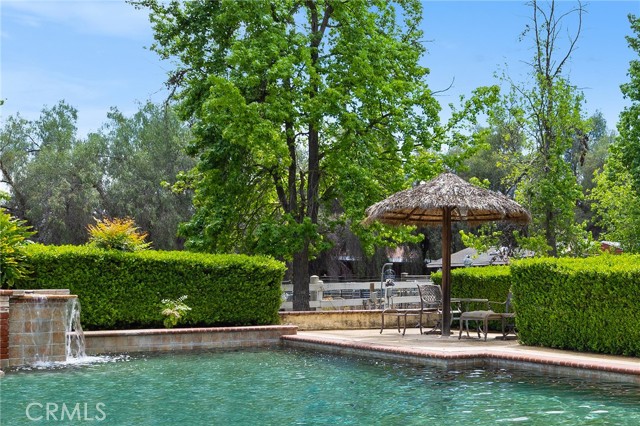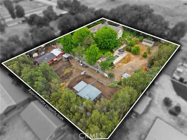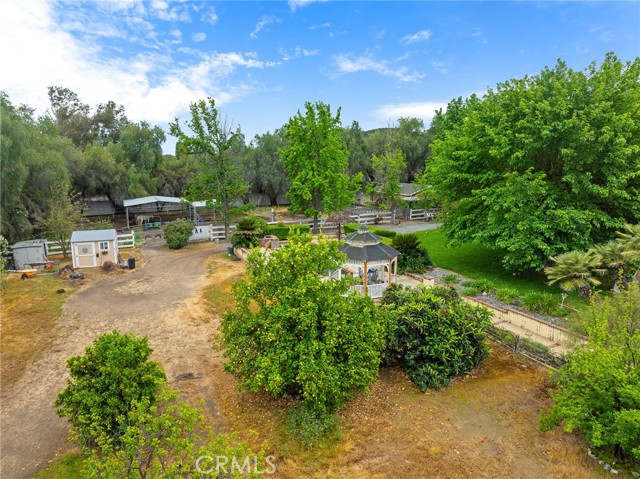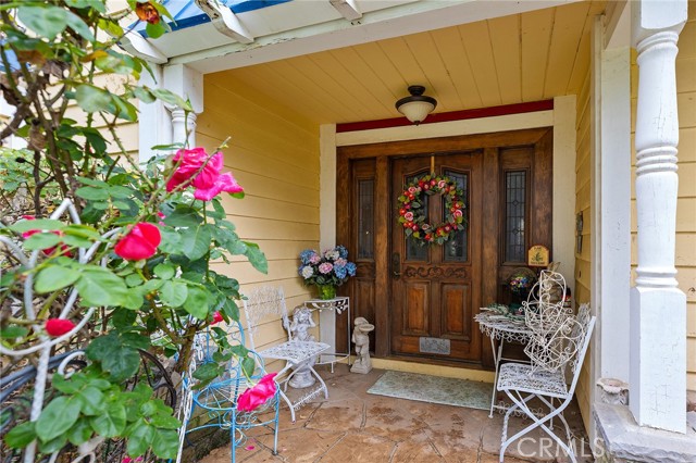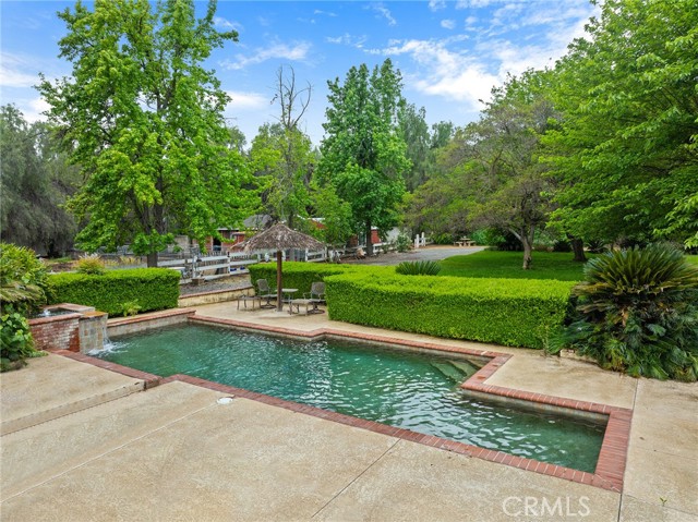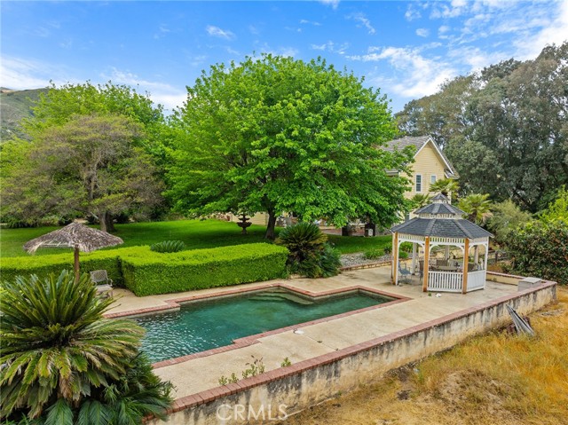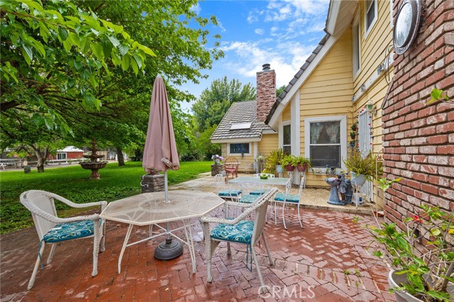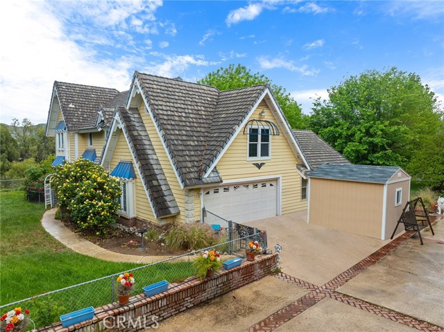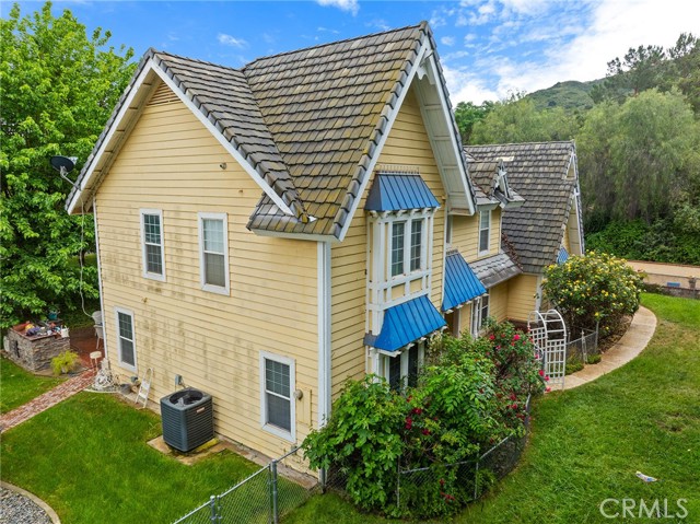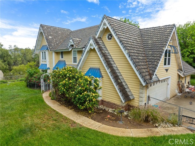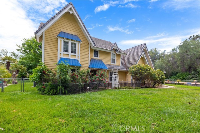 This storybook Victorian style home is situated on approximately 1.82 acres behind mature landscaping, offering privacy, charm, and space to enjoy the outdoors. This custom built estate welcomes you with two gated entries, adding to the sense of arrival and convenience. Inside, the home features a formal living room and two dining areas. The main floor includes a primary suite with a full bathroom, along with a half bathroom for guests. Upstairs offers three bedrooms, one bathroom, and a loft for additional living space. A spiral oak staircase adds character, while a large attic with staircase access provides valuable storage. Wood, marble, and carpeted flooring, along with skylights, create a warm and inviting interior. Two brick fireplaces, one with a Lopi pellet stove, add to the home’s comfortable feel. The kitchen includes granite countertops, oak cabinetry with stained glass accents, and a breakfast nook overlooking the backyard. Outside, the grounds are designed for both relaxation and function, with a saltwater pool featuring a granite pebble finish and waterfall, gazebo, and built-in BBQ create a comfortable space for relaxing or entertaining. Plush lawns and established shade trees, along with mature orchard trees including lemon, tangerine, grapefruit, pear, plum, and loquat, add to the setting. The property is fully fenced and offers room for horses, featuring two large pens with shelters and a turnout, multiple outbuildings, and a shop providing flexibility for animals, projects, or workspace. All this, just minutes from shopping, schools, and convenient freeway access, creating the opportunity for a private, flexible lifestyle with room to make it your own.