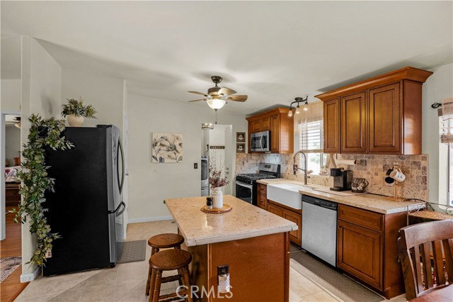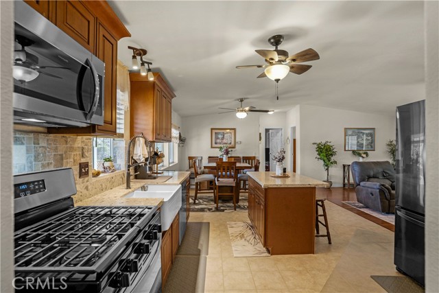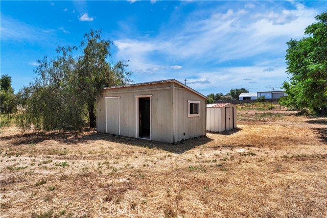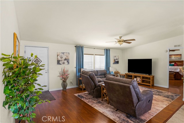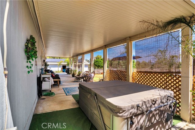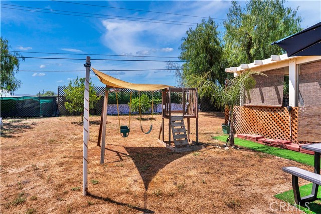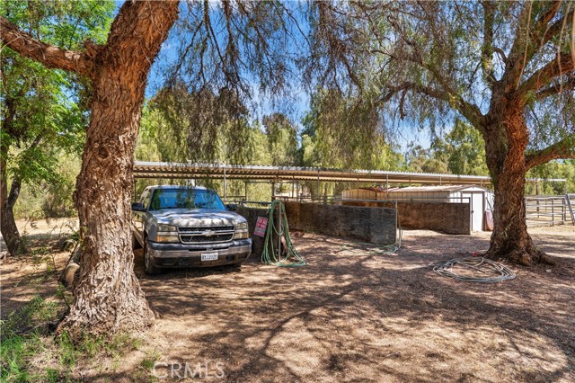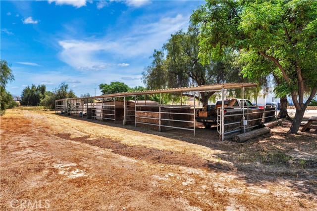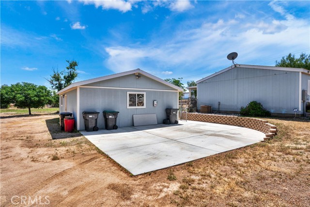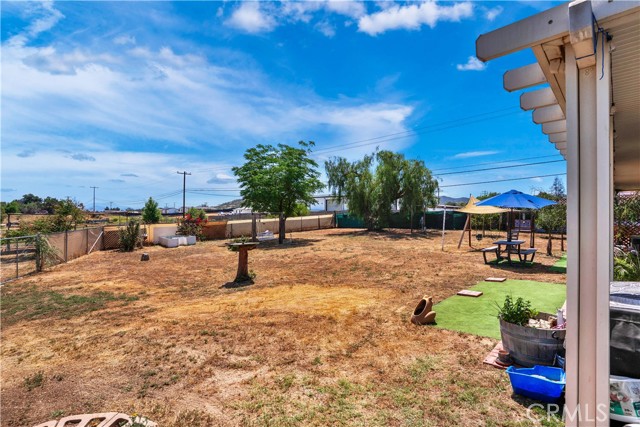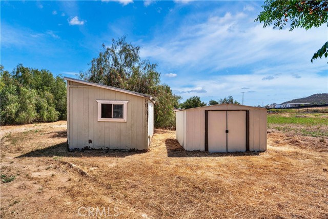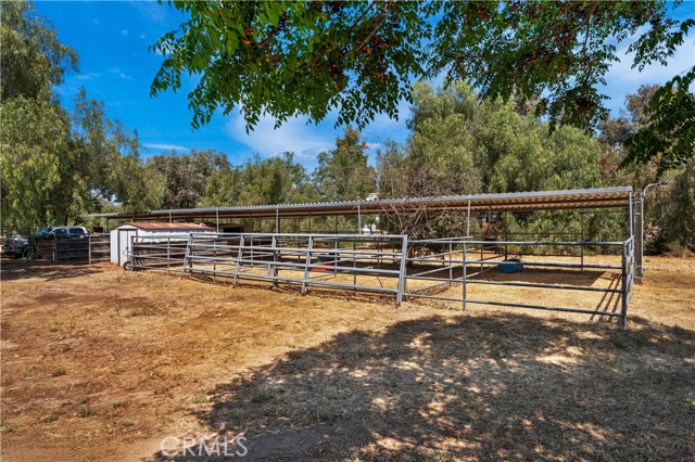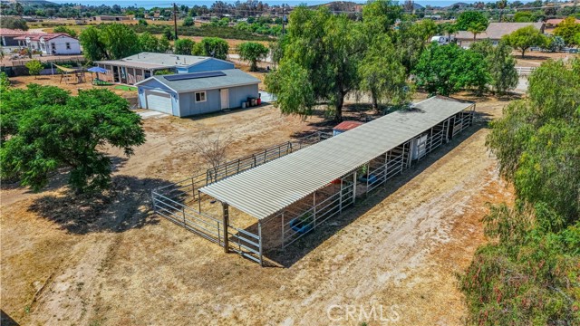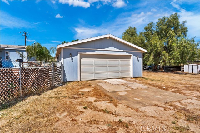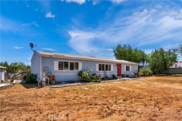 Welcome to your private country retreat in Menifee! Situated on 2.32 usable acres, this well-maintained 2002 manufactured home on a permanent foundation offers space, comfort, and versatility. Featuring 3 bedrooms, 2 bathrooms, and 1,456 sq ft, the home showcases an inviting open kitchen with updated kitchen cabinetry, tile backsplash, newer range and microwave, decorative lighting, and a center island -perfect for both everyday living and entertaining. Tile flooring flows through the kitchen and dining areas, while the living room and primary bedroom feature wood flooring, creating a warm and functional living space. The spacious primary suite includes an en-suite bathroom with dual sinks and a walk-in shower. The secondary bedrooms offer newer carpet and walk-in closets, providing comfort and ample storage. Additional interior highlights include raised panel wood doors, dual pane windows, blinds, ceiling fans, and an indoor laundry room. Step outside to enjoy the covered rear porch, ideal for relaxing and taking in the peaceful country views. The property is well suited for rural living and animal use, featuring multiple pipe corrals/stalls, a tack shed, and plenty of usable land. Additional features include detached 2-car garage, SOLAR system to be paid off at close of escrow, newer hot tub included, two storage sheds, security screen doors (front & back), propane tank, low taxes & NO HOA, and room for RVs, trailers, and more. This is a rare opportunity to own a versatile acreage property with room to grow, relax, and enjoy country living, just minutes from city conveniences.