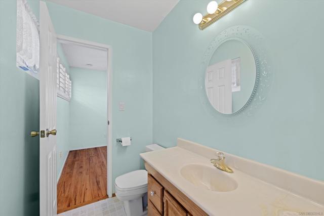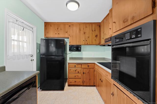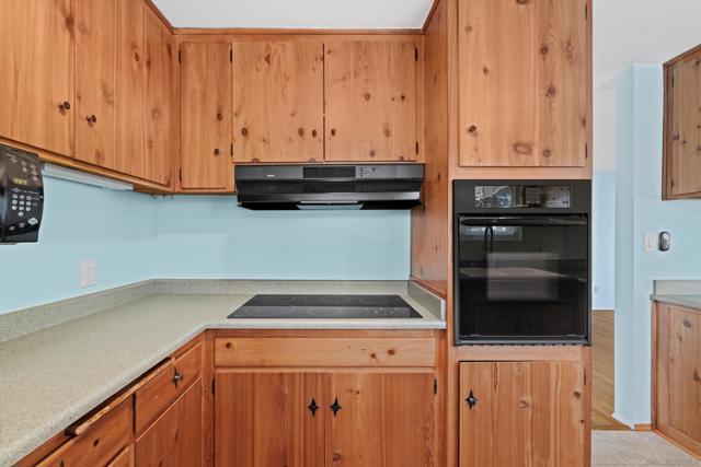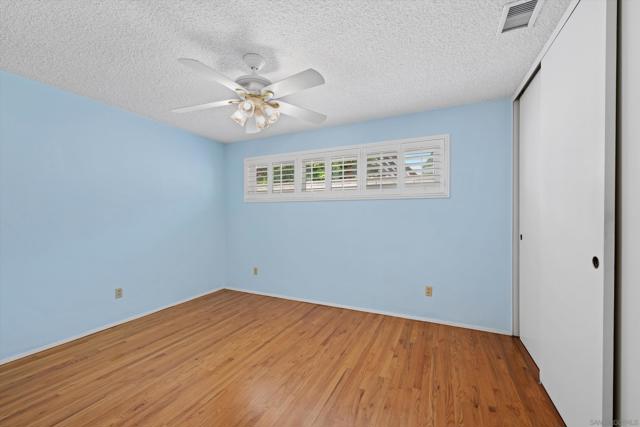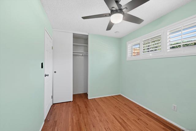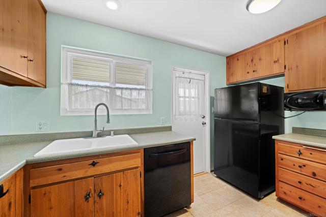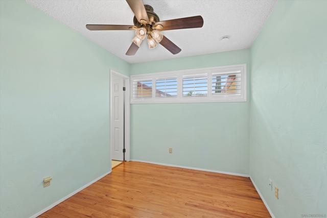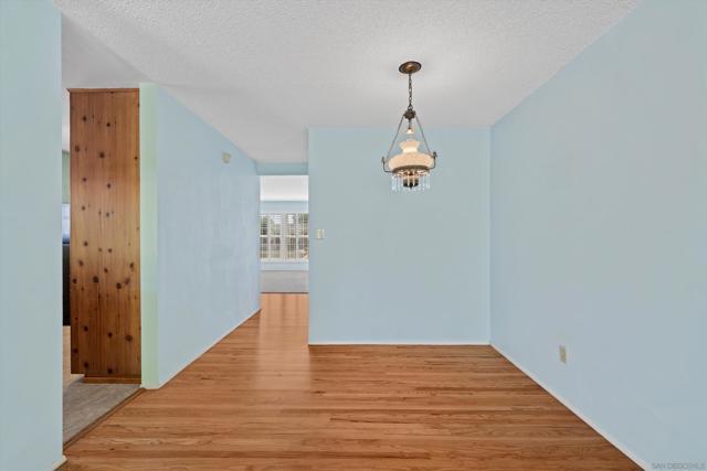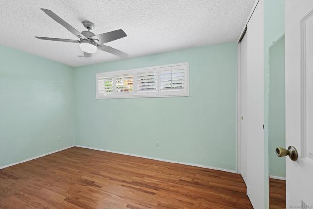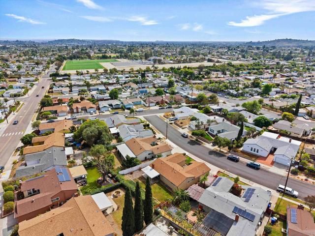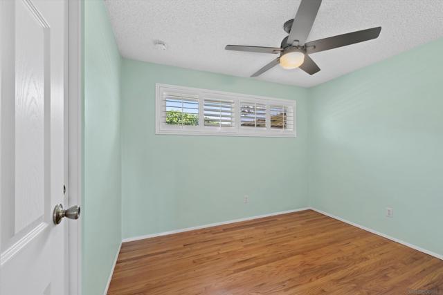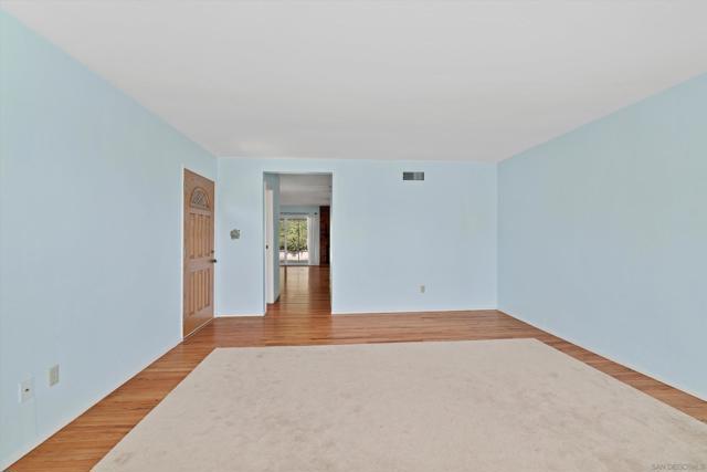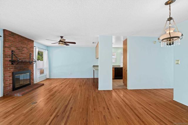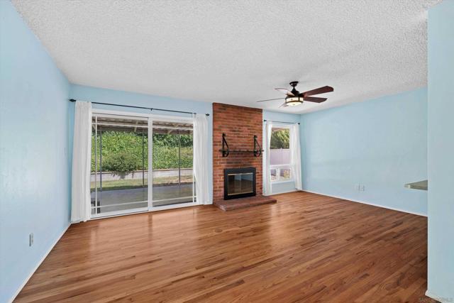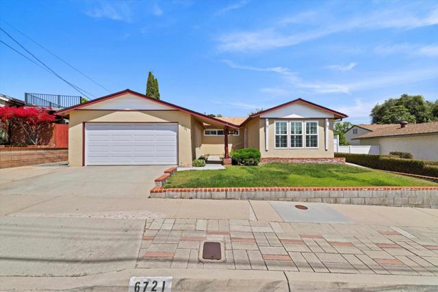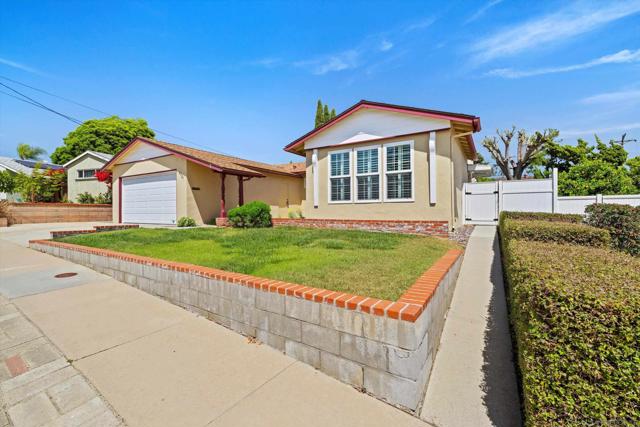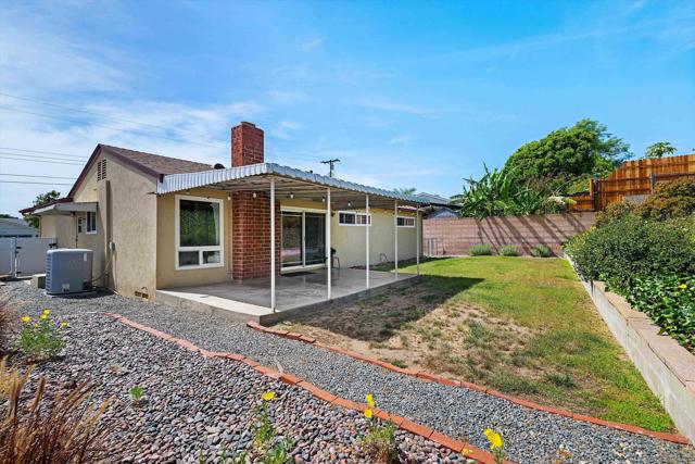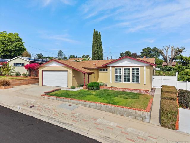 San Carlos single-story with genuine curb appeal, brick accent detailing at the foundation and entry walk, and a floor plan that gives you both a formal living room with a large picture window at the front and a separate family room with gas fireplace at the rear. The family room opens through a sliding glass door to a covered patio and a fully fenced, private backyard with mature landscaping, timed sprinklers, and a dog run on the side. Hardwood floors, plantation shutters throughout, central HVAC, and a kitchen with original knotty pine cabinetry. The home is original throughout, making it a solid opportunity for a buyer looking to add their own upgrades and build instant equity. Every bedroom has a ceiling fan, as does the family room. The primary bedroom includes a private bath with step-in shower. A second full bath with tub-shower serves the remaining bedrooms, and a half bath off the dining area rounds out the count. The two-car garage includes a laundry area with washer and dryer and a built-in workbench. Gage Elementary is two blocks away, Pershing Middle School just around the corner, and Henry High School two miles out, all within San Diego Unified. San Carlos is a quiet, established neighborhood with easy access to Lake Murray, Mission Trails Regional Park, and the 8 and 125 freeways.