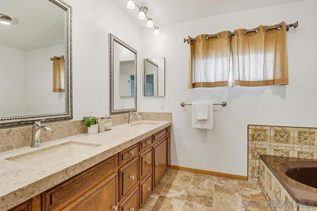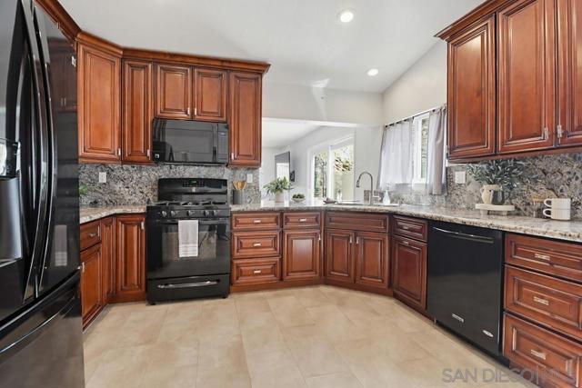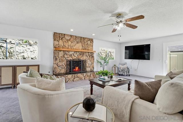 It's not just a home, it's a lifestyle! Incredible 4 bedroom, 3 full bath home nestled in quiet enclave tucked in amongst the area hills! Pride-in-ownership and meticulous care abound as you arrive! Lush green turf and custom brick driveway and patio greet you! Take in the awesome views of the area mountains all around! Open the gorgeous beveled glass wood door to the formal entry! Loads of beautiful natural light everywhere! To your right the completely remodeled big kitchen with stunning stone counters, beautiful cherry wood custom cabinetry, room for breakfast area, recessed lighting, breakfast bar seating, and plenty of cabinet and counter space! Spacious living room/dining area flows to huge family room with cozy fireplace and 2 sliders to backyard! Two primary suites! One upstairs with private balcony, big walk-in closet, and en-suite updated bath with soaking tub! Primary suite #2 is downstairs with en-suite bath and door to backyard! Great sized additional bedrooms! Incredibly private backyard with bubbly spa and wrap around patio! Details not to miss-new roof 3/2026, house freshly painted 3/2026, owned solar, 2 car attached garage, double paned windows and newer sliders, ++! Make this YOUR home before someone else does! Welcome Home!