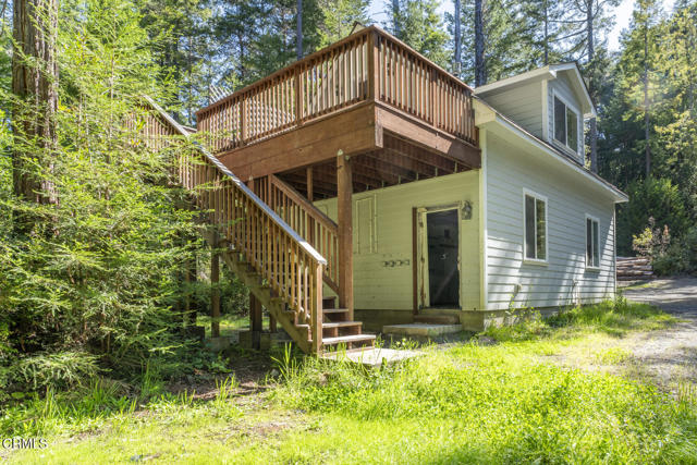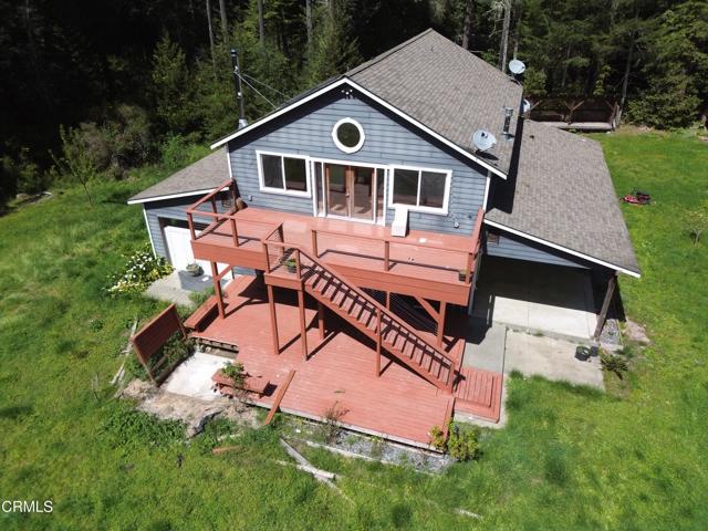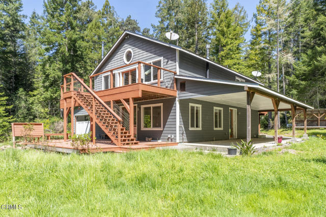 Beautiful 10 acre estate in the Redwoods!Put the finishing touches on this house and make it the home of your dreams. The house is 2800 square feet with an attached 620 square foot garage. A carport that can easily accommodate two cars is conveniently located overhanging the front door. The first floor features radiant cement floors throughout. Large living room with a bar and french doors leading to the deck. Perfect for entertaining guests.Upstairs is full of old world charm, featuring Pine tongue and groove flooring with pine ceilings to match. The kitchen is a spacious open design full of warmth. Complimented with beautiful woodworking, a gas fireplace with ceramic logs and french doors looking out onto the second story deck and overlooking the large lawn. A private 240 square foot office sits off to the side of the house. A 600 square foot unfinished ADU sits atop a 600 square foot garage at the front of the driveway. The property is real estate owned. All buildings are in need of some cosmetic repairs.This property is truly a one of a kind gem with amazing potential.