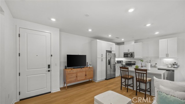 This 956-square-foot residence offers a sophisticated blend of modern efficiency and resort-style living. The thoughtfully designed layout features two spacious bedrooms and two bathrooms, highlighted by a primary suite with a private attached bath and a versatile second bedroom served by a convenient guest-accessible bathroom. The heart of the home is an expansive open-concept great room where the living, dining, and kitchen areas converge for effortless entertaining. The gourmet kitchen is a standout, featuring a large social island, sleek all-white cabinetry with under-cabinet lighting, and a full suite of brand-new appliances including a washer, dryer, and refrigerator, all provided for ultimate convenience. Every detail of this home has been curated for comfort and sustainability. Modern tech-ready features include a two-car tandem garage equipped with a dedicated EV charger. Enjoy access to sparkling pool, jacuzzi, fitness center, and clubhouse. Perfectly positioned just minutes from major shopping centers, dining, and essential services, this home offers an unparalleled rental opportunity in a highly desirable neighborhood.