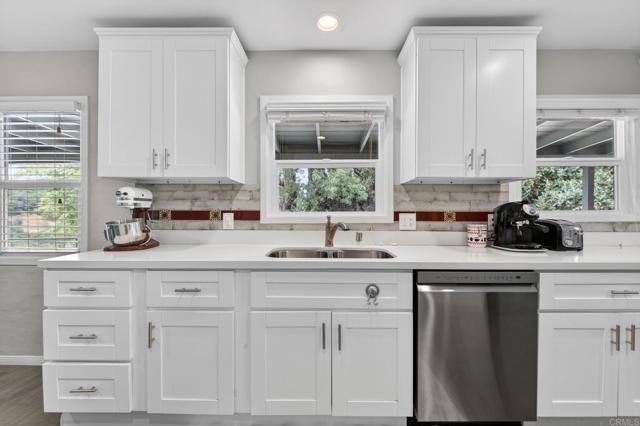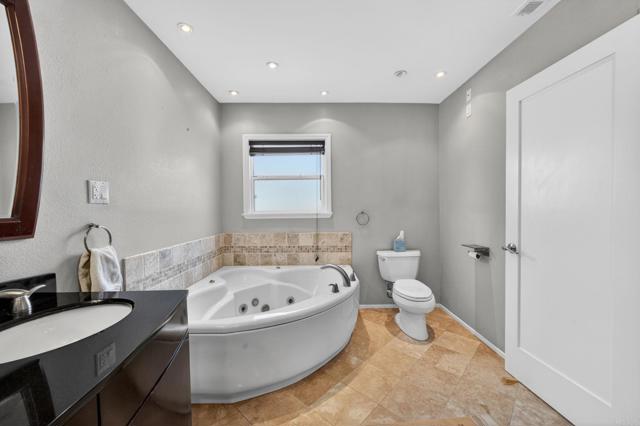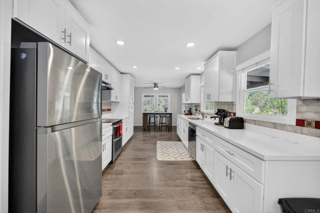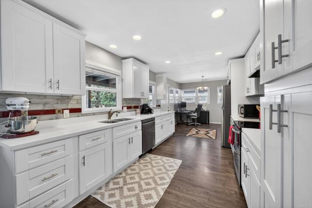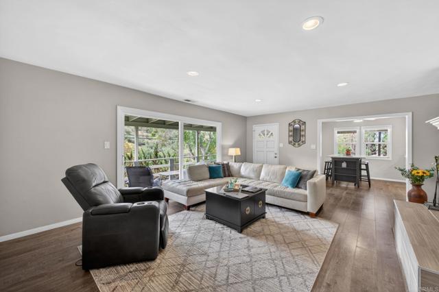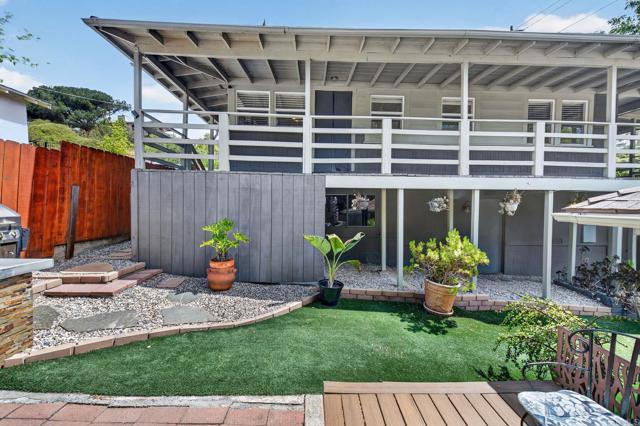 Welcome to 6150 Radio Drive — A Private Canyon Retreat in the Heart of Encanto - Ask about unique financing opportunity specifically available for this home that may help improve your monthly affordability or reduce upfront costs! Perched on an expansive 8,000+ sq ft corner lot and wrapped in mature, lush foliage, this beautifully reimagined 3-bedroom, 3-bathroom home delivers 1,910 square feet of turnkey living — and the kind of everyday privacy that's nearly impossible to find in San Diego. Lovingly maintained by meticulous owners, every detail has been thoughtfully cared for. From the moment you step inside, the quality of the craftsmanship speaks for itself. The fully remodeled kitchen is the showstopper, featuring quartz countertops, crisp shaker cabinetry, a striking full-wall backsplash, and stainless steel appliances — designed as much for gathering as it is for cooking. Recessed lighting flows seamlessly throughout every room, and each bedroom is outfitted with its own ceiling fan for year-round comfort. Just off the kitchen, a flexible bonus room invites you to make it your own: a sun-filled home office, a cozy reading nook, a breakfast spot, or the perfect homework corner for the kids. The floor plan lives beautifully, with two bedrooms offering private en-suite baths — effectively giving you the feel of dual primary suites. The main primary suite is a true escape, complete with an expansive bathroom with a jetted soaker tub and a generous walk-in closet outfitted with custom built-in shelving. Step outside and discover where this home truly comes alive. A sprawling 400 sq ft deck wraps along the back and side of the home with direct access from both the kitchen and living room — the ideal stage for morning coffee, lazy weekend brunches, or sunset wine with sweeping canyon views. Beyond the deck, your private backyard unfolds like a personal resort: a bubbling hot tub, a gazebo for shaded lounging, an outdoor TV, and abundant seating for entertaining under the stars. Out front, a fully gated space adds room for RV or boat storage, along with additional area to relax and enjoy — every inch of this lot is usable. Peace of mind comes standard with a newer roof (within the last 10 years), updated electrical panel, and newer water heater — a reflection of the pride of ownership felt throughout. A 2-car garage plus three separate under-home storage areas — including an unfinished basement brimming with potential for a workshop, home gym, or creative studio — round out this exceptional offering. All of this just minutes from Chollas Lake Park, trolley access, local shopping, and only 10 minutes to Downtown San Diego and the Gaslamp Quarter. Welcome home to Encanto living at its very best.