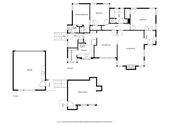 Versatile corner-lot home with flexible layout and exceptional storage! Situated on a desirable corner lot, this well-maintained home offers a highly flexible floor plan with multiple living, working, and storage options. The entry features a dedicated storage area with built-in shelving and leads into a living room with a gas fireplace. Moving further into the home is a spacious area ideal for a dining room or home office which conveniently sits just off the kitchen. The kitchen features a bay window, gas oven and stove, and a charming dining nook. The laundry room provides additional storage and opens to a three-quarter bathroom. The north end of the home features all of the bedrooms and bathrooms. The first bedroom connects to the three-quarter bathroom off of the laundry room, allowing for a potential en-suite set-up. This huge bedroom can potentially function as two different sleeping areas as each sleeping area has a separate entrance, further demonstrating the home's flexibility. A second full bathroom off the living area includes a separate tub and shower. Another generously-sized bedroom with a large closet sits adjacent to the full bathroom. The property also showcases a two-car garage with recessed lighting, a sink, and workshop/storage space, along with direct access to the backyard, just steps from the kitchen. Moreover, there is a well-maintained bonus room that can serve as an office or ADU. Outdoor living is a standout feature of the home with a flat, private backyard, side yard access, and a large patio off the laundry room. The property includes two large storage sheds, eco-friendly landscaping, and convenient access from the front yard to the backyard- ideal if utilizing the flexible space as a potential ADU or office. Additional highlights include a tankless water heater, AC, and fresh paint.