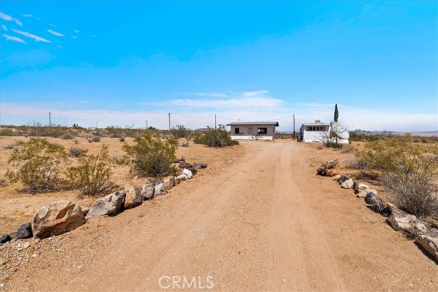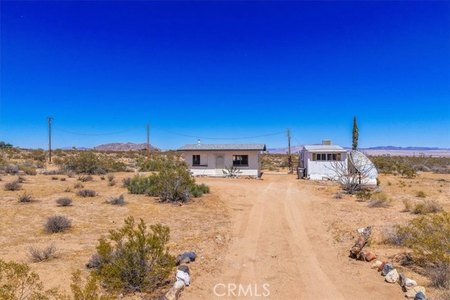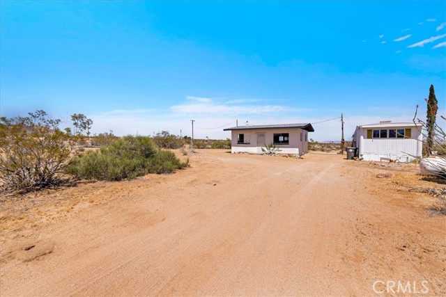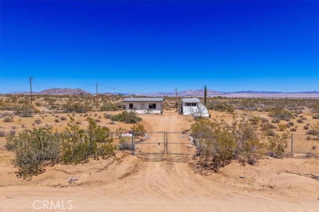 MOBILE HOME AND A CABIN WITH WATER & ELECTRIC! A unique High Desert opportunity featuring a mobile home along with a separate cabin that has water and power already connected. The cabin has been freshly painted and offers a bright, open feel with tile flooring, exposed beam ceilings, and plenty of natural light. The property is accessed through a gated entry opening up to a wide, usable lot surrounded by natural desert landscape. Enjoy expansive views, privacy, and open skies, with ample space for storage, or future plans. A great opportunity for a buyer looking for multiple structures and utilities already in place!