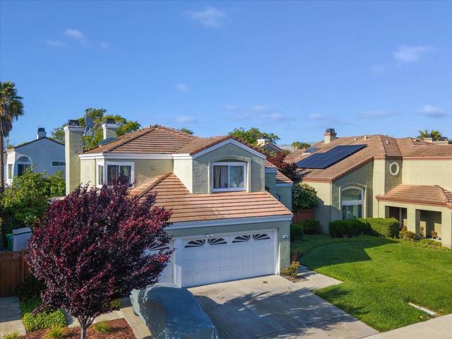 Rare Opportunity! Located within the highly desired gated Meridien community, this approximately 2,357 sq ft two-story home offers 4 bedrooms, 3 full baths, a versatile loft, and a 3-car garage, providing a spacious and highly functional layout. Soaring ceilings and abundant natural light create a bright and open living environment. Fresh interior paint and newly installed carpeting make the home move-in ready. A desirable downstairs bedroom and full bath offer flexibility for multi-generational living or a private home office. Upstairs, besides the two independent bedrooms, the loft provides additional space for a second living area, workspace, or study. In addition, the primary suite features a walk-in closet and a well-appointed en-suite bathroom and bathtub. Set on an approximately 7,738 sq ft lot, the courtyard has been thoughtfully landscaped and features a tranquil waterfall and over a dozen mature fruit trees. Seasonal blossoms and harvests create a private, serene, resort-style garden atmosphere. The community includes gated access, a swimming pool, basketball court, private park, and walking paths. Conveniently located near I-880, 84, and 92, as well as BART, offering easy access to Silicon Valley and surrounding areas.
