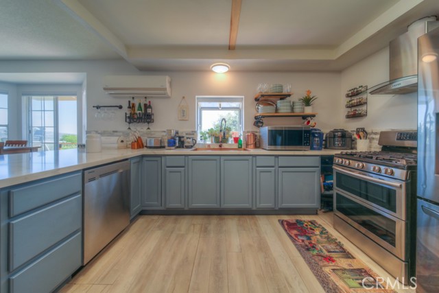 Located at 56795 Mount Road in Anza, this updated single-story home offers 1,221 sq ft of updated living space on 2.5 fully usable and mostly fenced acres with sweeping valley and mountain views. Built in 1989 and positioned at the end of the road before a large, gated parcel, the setting provides added privacy with minimal through traffic. Recent improvements include a newer roof (Sept 2023), vinyl flooring, remodeled kitchen with replaced cabinetry and quartz countertops, and two remodeled bathrooms (all within the past 3 years). The kitchen includes a refrigerator that is approximately 3 years old, propane range, and dishwasher. Lots of great storage and open concept to a separated dining/family space with a newer wood burning stove and rear one light door leading to a raised wood deck with an included spa. The views from this space are gorgeous! Outdoor features include a separate fenced pet yard, a chicken coop and shed/carport. The property is well-suited for horses, gardening, or a variety of rural uses. Included in the sale is an approx. 675 SF Single-wide trailer ADU remodeled within the past 2 years offering a kitchenette, dining room, living room space, bedroom and storage room. Additional highlights include an attached two-car garage and convenient access to local amenities in Anza, including markets, hardware store, dining, and churches. Hamilton School is located nearby (walking distance). The beautiful Anza Valley delivers clean open space living that allows for peace and tranquility. Nearby surrounding areas include Palm Desert, Idyllwild and Temecula. Great location, not far from paved road and stunning views.