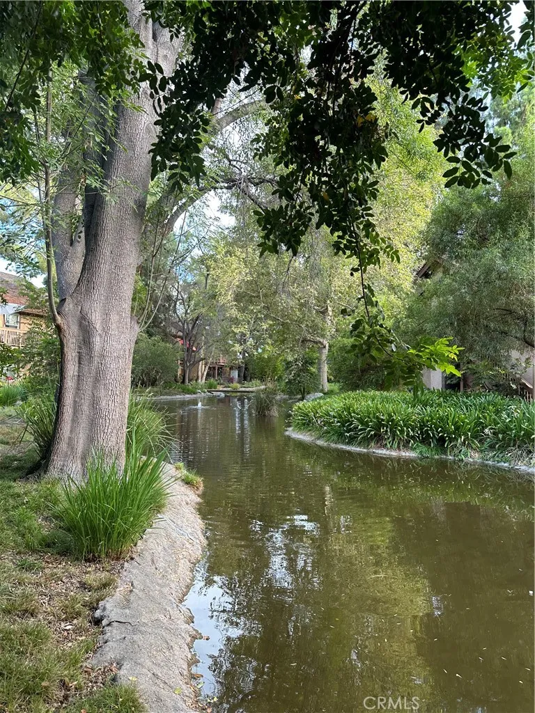 Canoga Lakes popular 2-bedroom downstairs unit in an amazing location with beautiful stream and lush landscaping views.